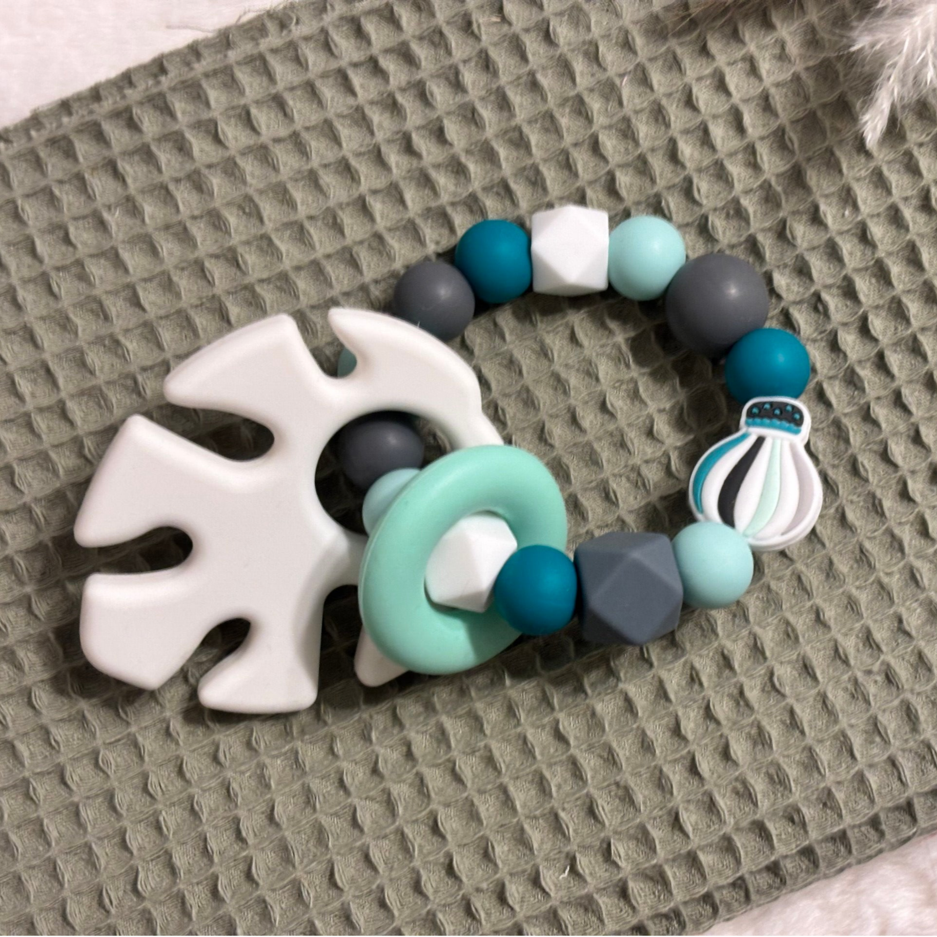 Beissring aus Silikon Ballon Green/white